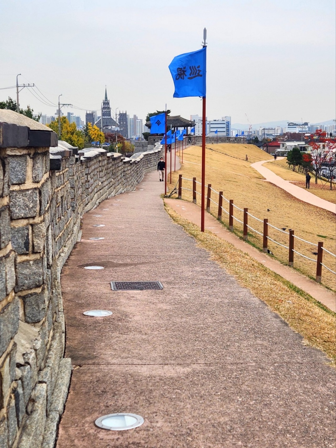 수원화성을 걷다가 신발에 화성을 담아봤어요.