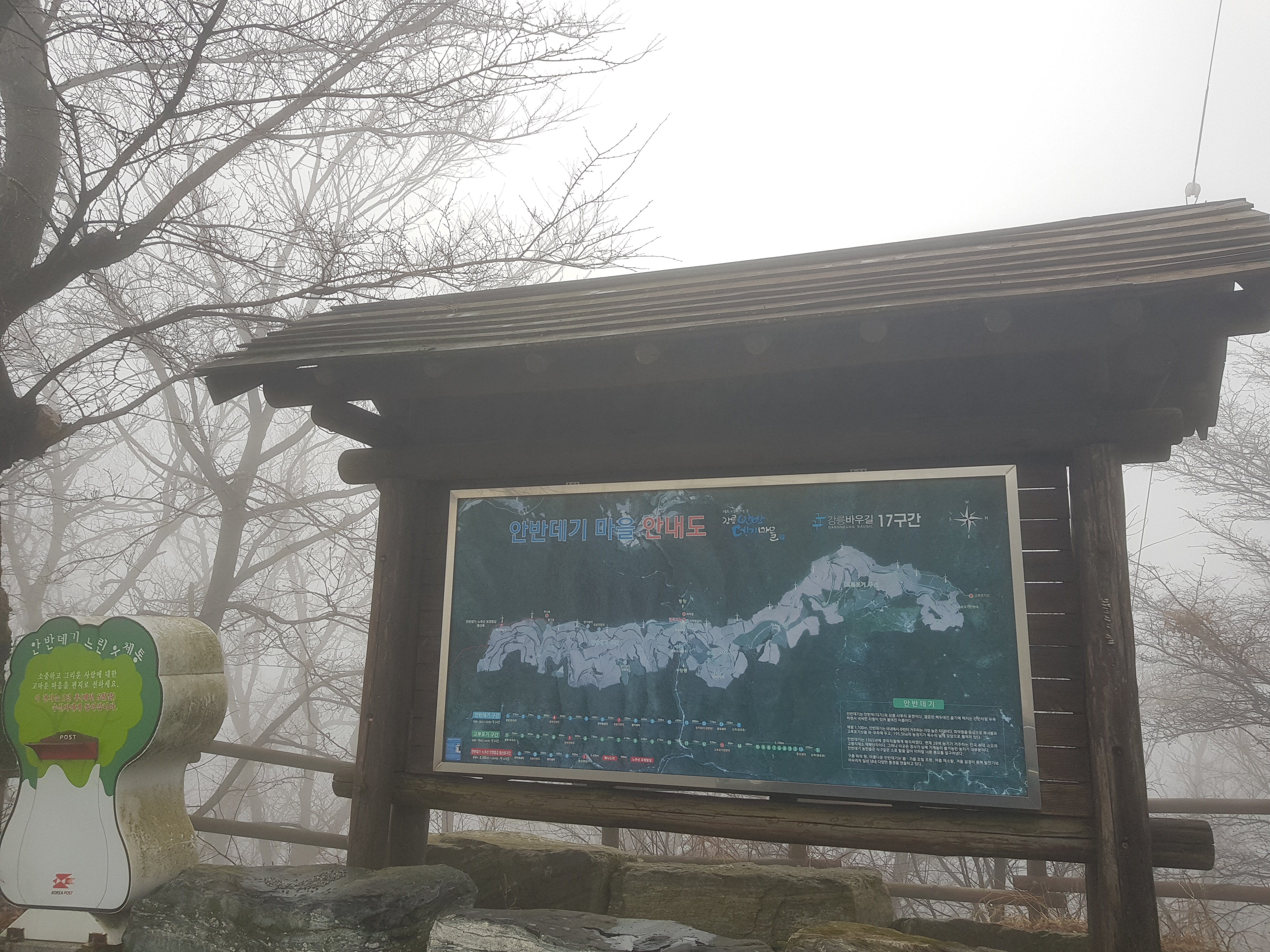 안개 때문에 전혀 보이지 않아서 안반데기 마을 입구에 있는 카페에 들어왔다.