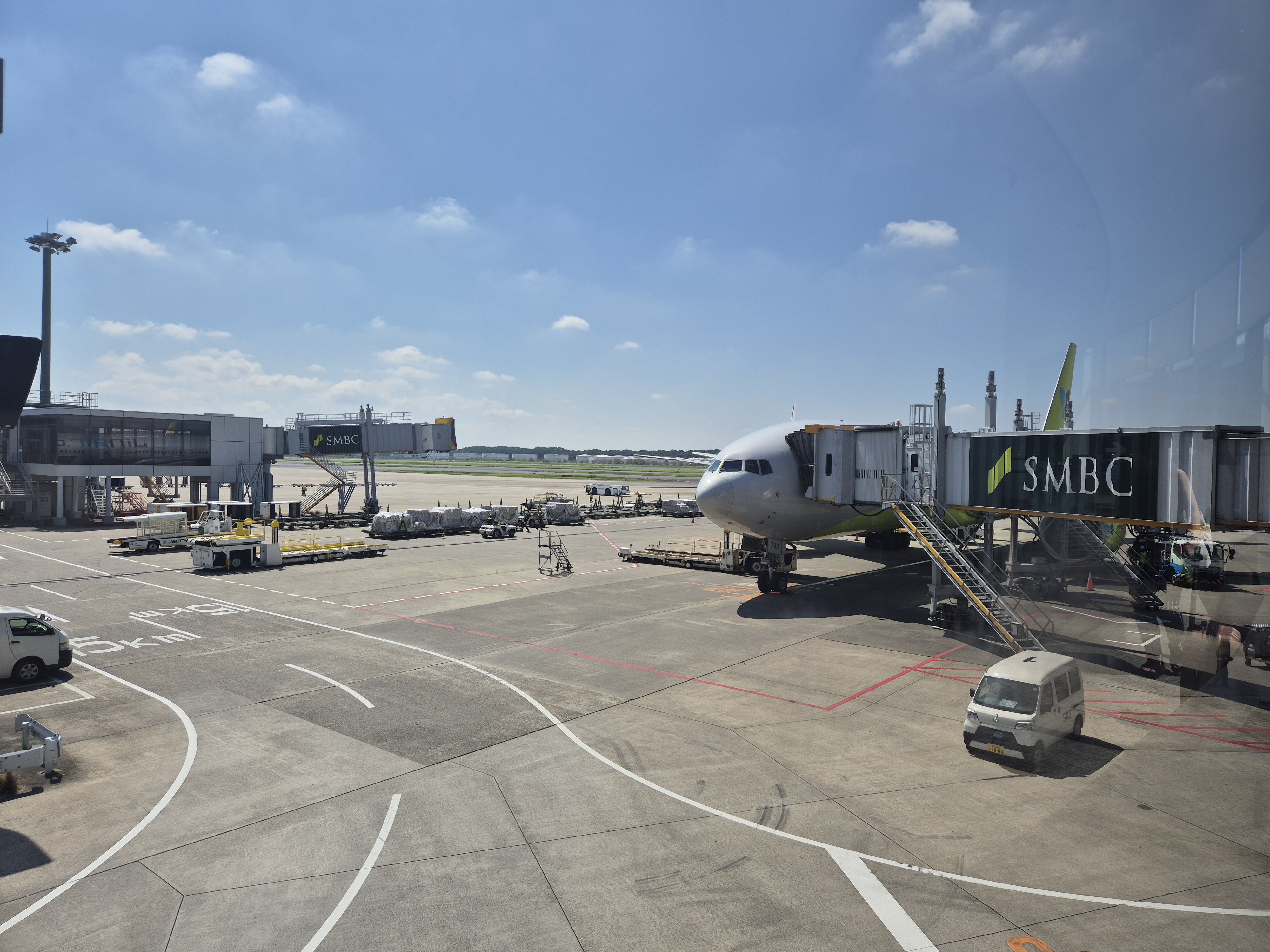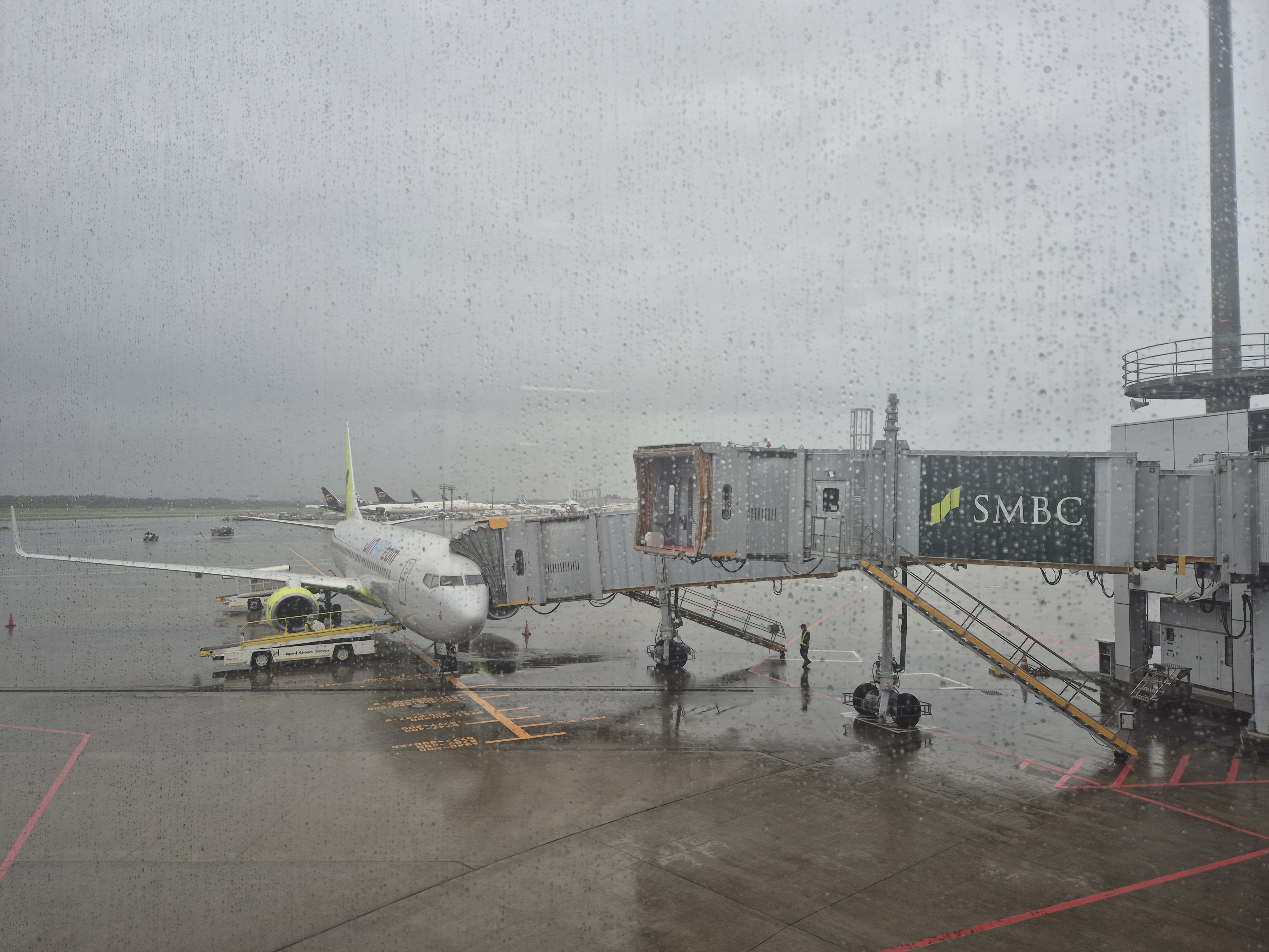 서울은 아주 맑은 날씨였는데 나리타 공항에는 많은 비가 내리고 있었다.